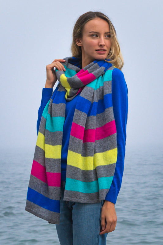 Sustainable Cashmere Lofty Scarf - Multi Stripe