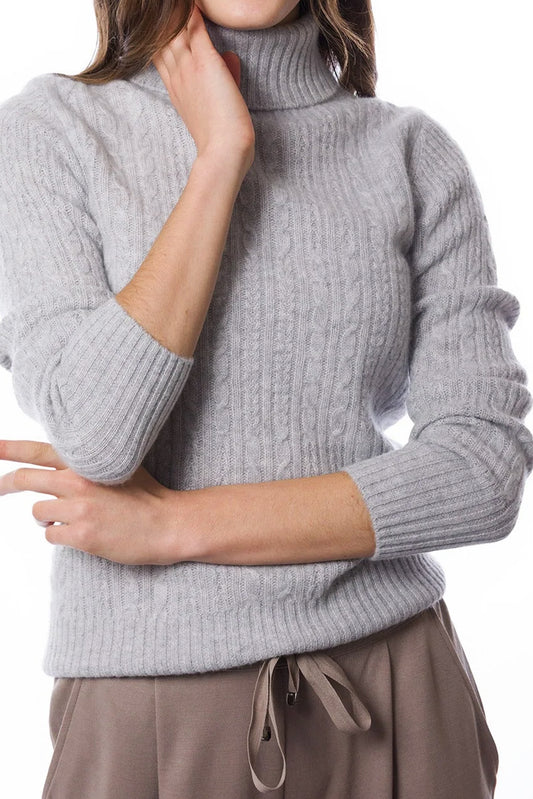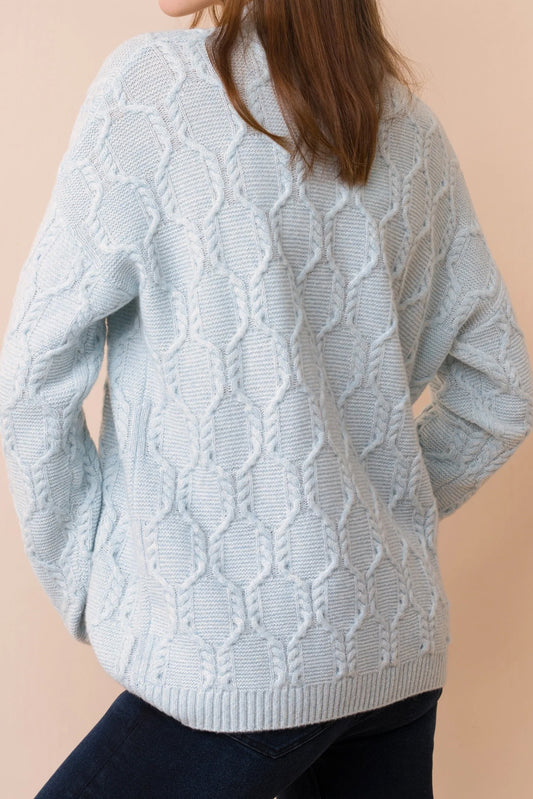 Sustainable Cashmere Cable Knit Sweater - Pale Heather Grey