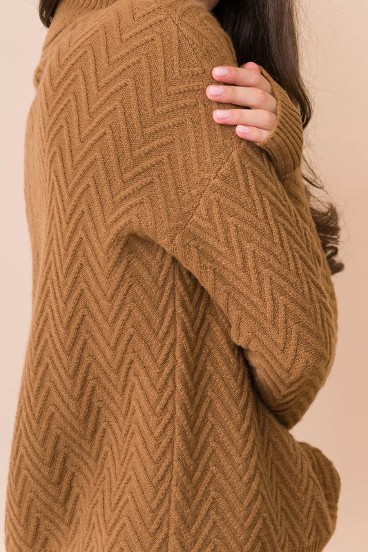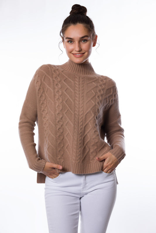 Sustainable Cashmere Loose Fit Cable Sweater - Modern Camel