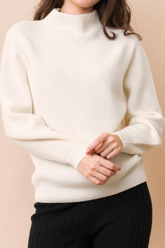 Sustainable Cashmere Half-sleeve Mock Neck Sweater - Camel