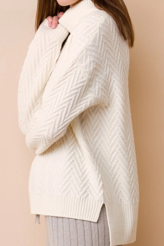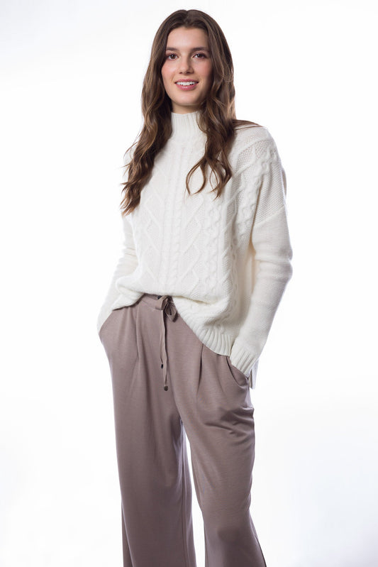 Sustainable Cashmere Loose Fit Cable Sweater - White