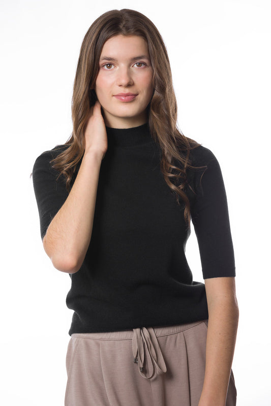 Sustainable Cashmere Short Sleeve Turtleneck Sweater - Black